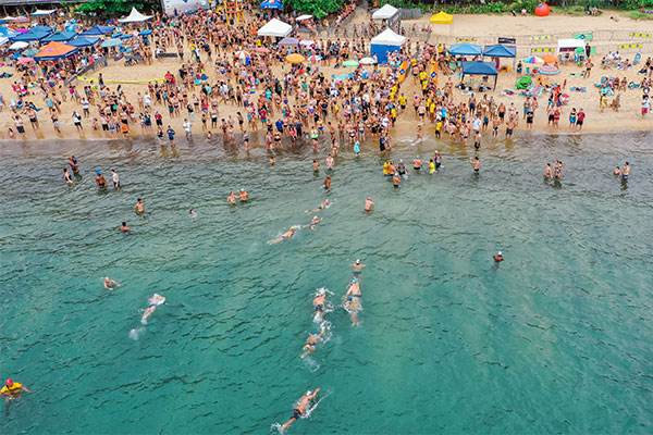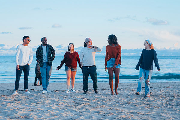 Smiling couple enjoying a private getaway Friends celebrating on a beach